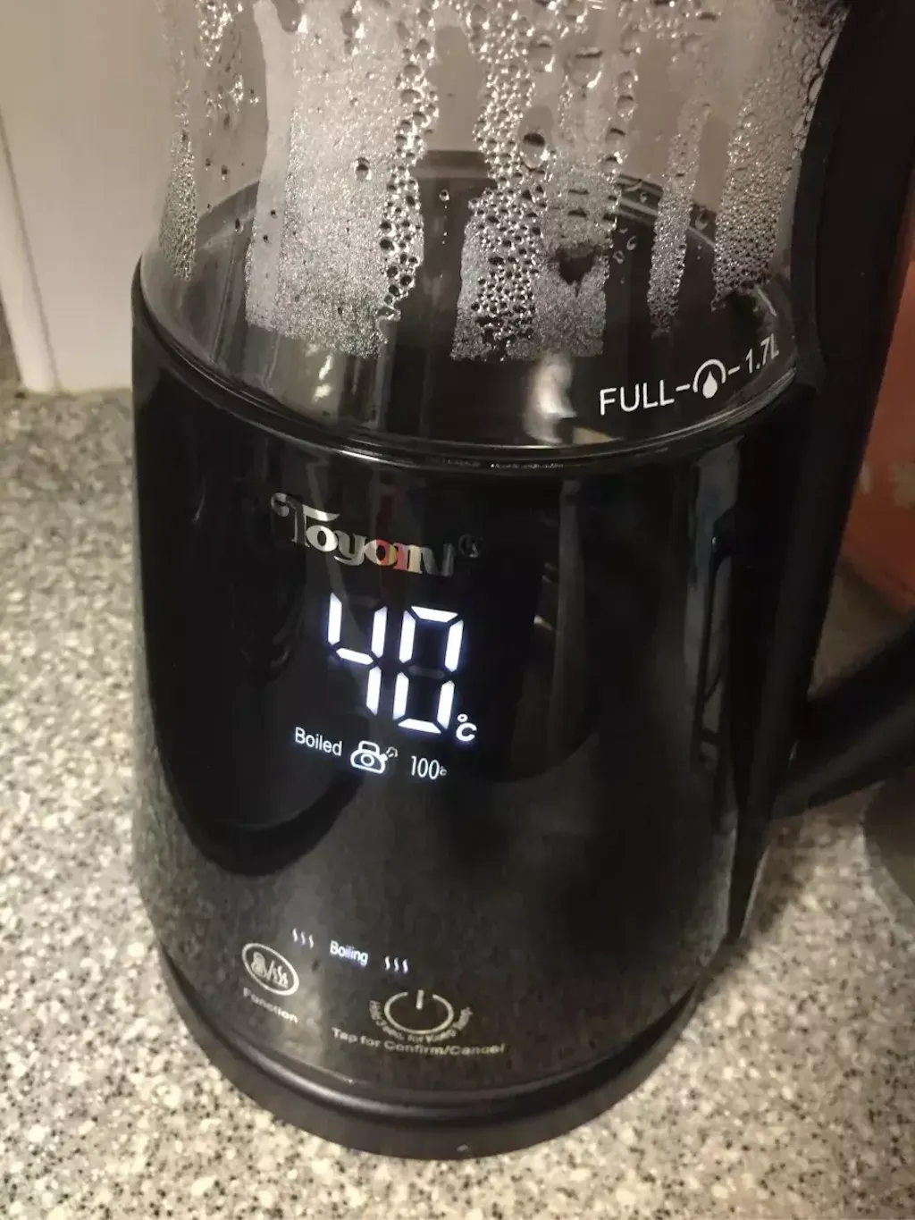 Select a Keep Warm Temperature (40/60/80/90/100 °C) and the kettle will come to a boil before warming down and keeping at the chosen keep warm temperature for 60 minutes!