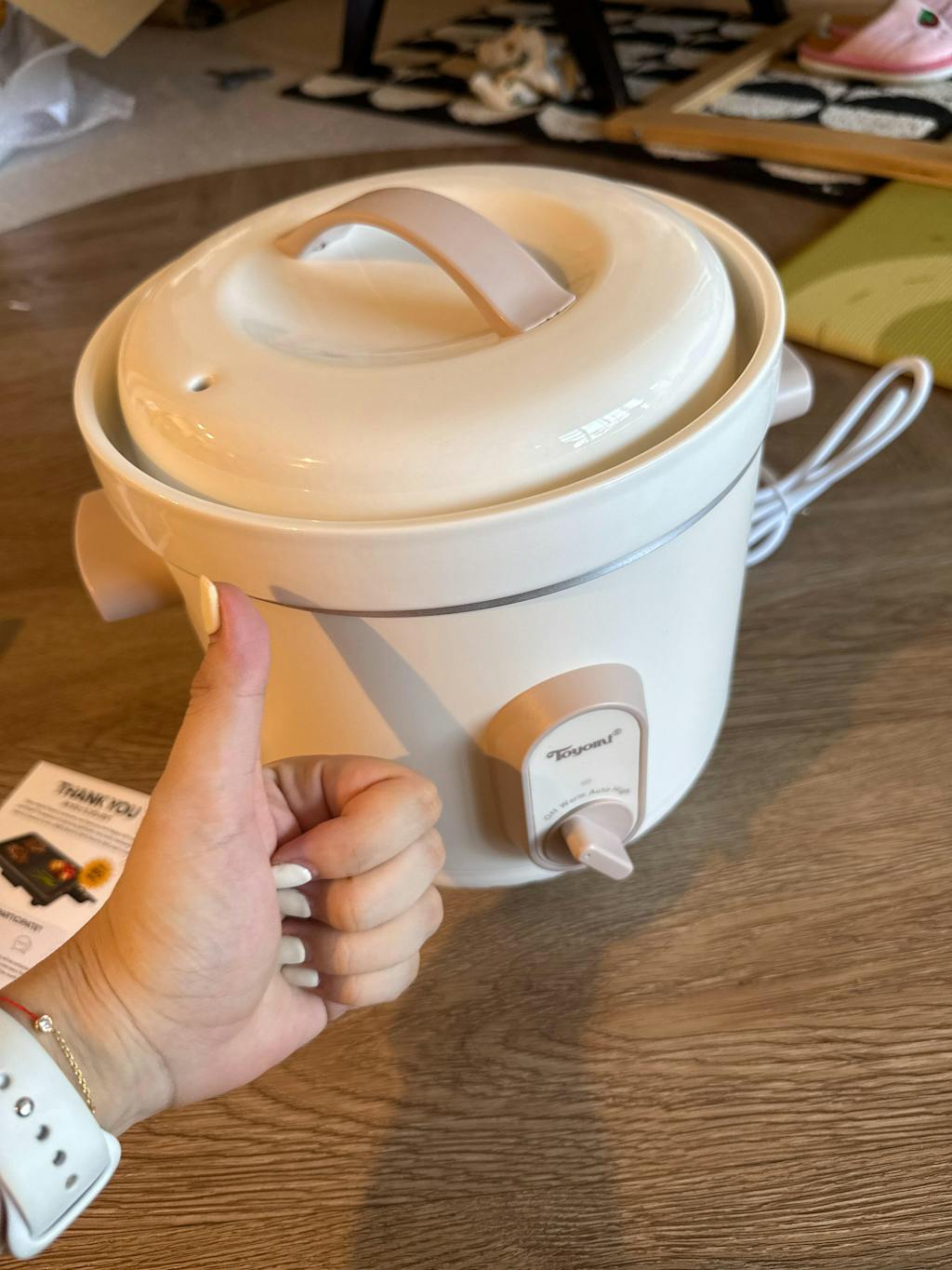 Slow cooker looks good and heats up fact. I am happy with my Toyomi slow cooker