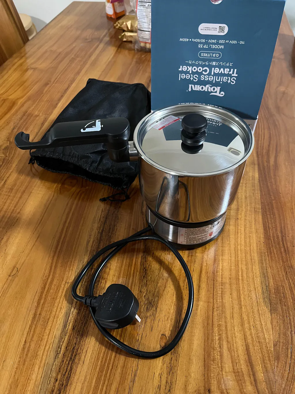Dual voltage. Good quality. 304 stainless steel pot. Good for travel. Compact and convenient to carry.